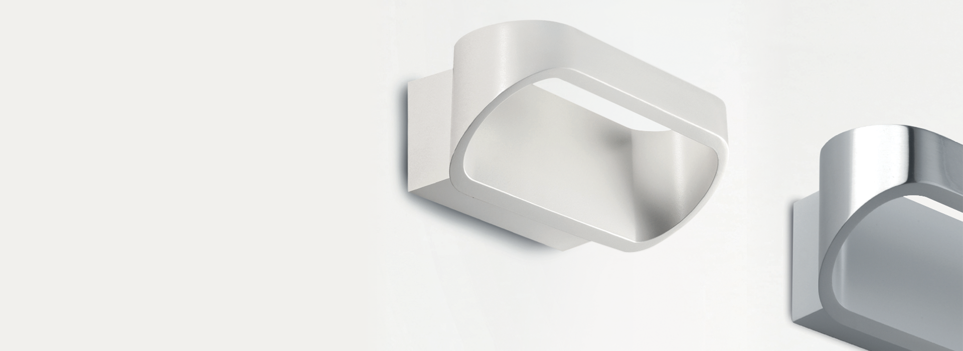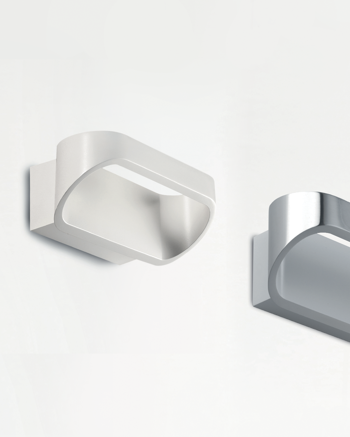 Grace, realized in aluminum, is particularly suitable for diffused lighting in indoor ambients. It is available in two versions of 18 cm and 30 cm. wide, equipped respectively with 5 W power LED for indirect emission and 2x 5W for double direct / indirect emission. Both versions are available in white or two-tone, white for the internal visible part and aluminum for the external part. It comes complete with integrated driver.