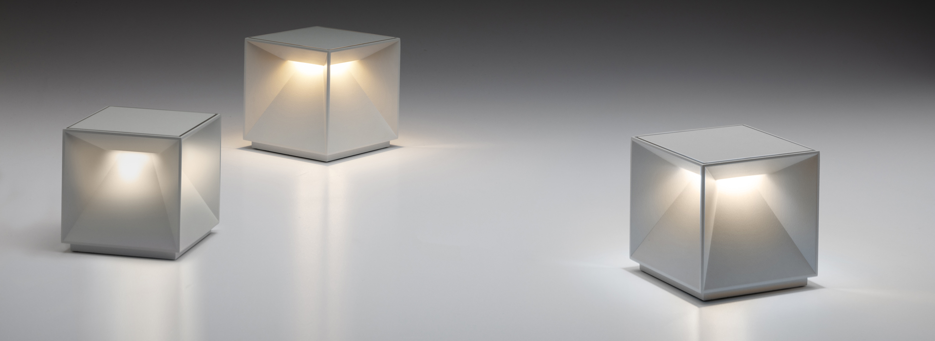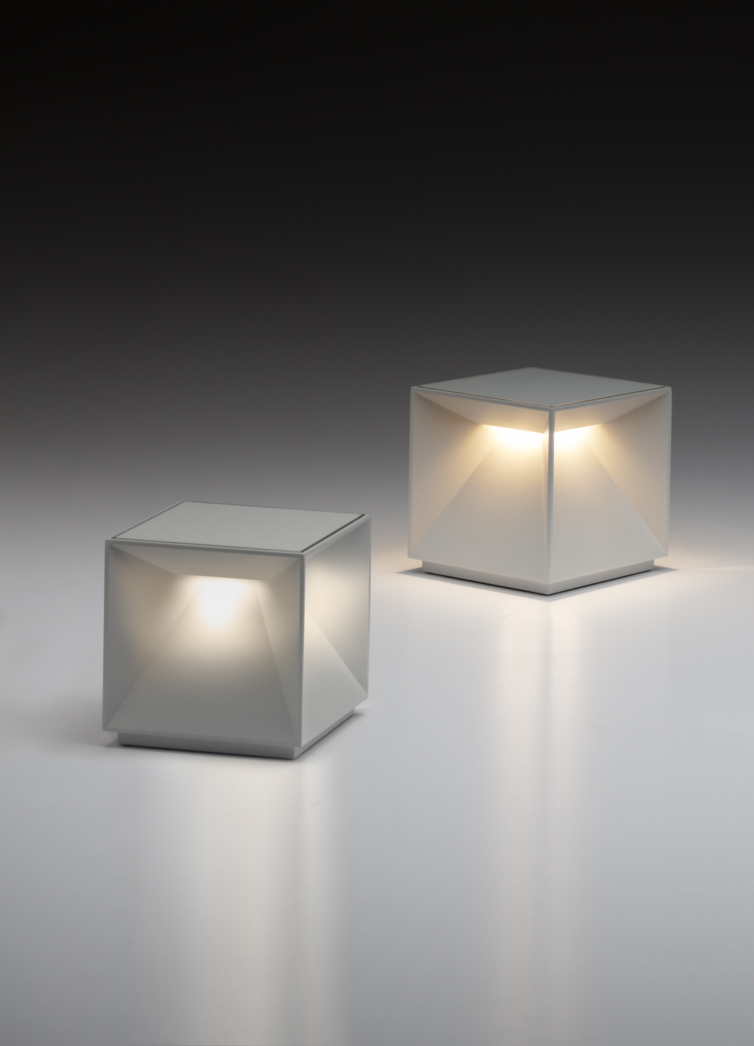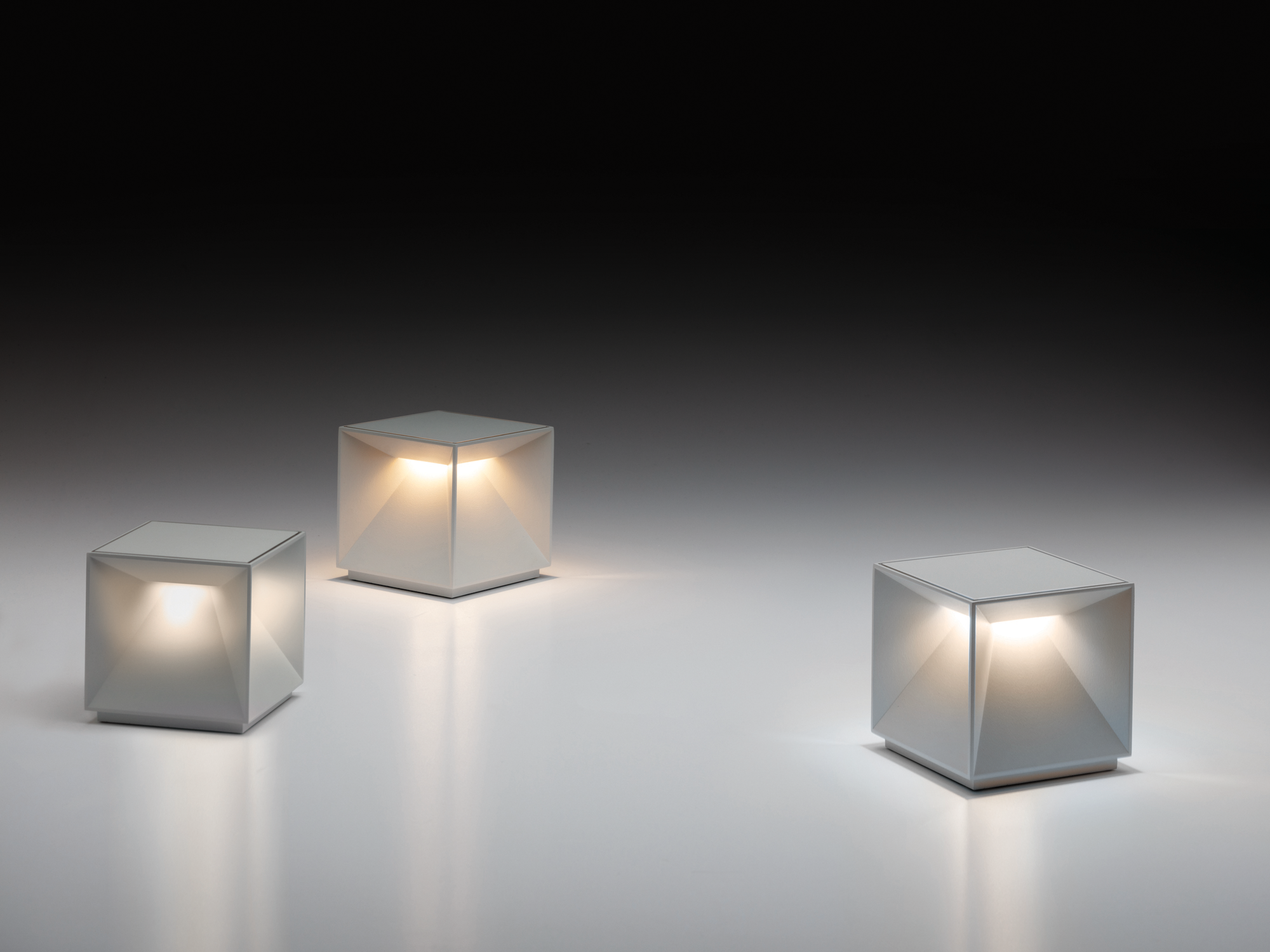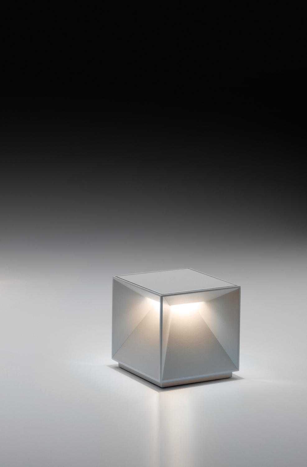 Cubiq is a luminous object with a distinctive character, ideal as a focal point in environments where sobriety and soft lighting are required. It is suitable for both indoor and outdoor use and qualifies as an excellent choice to enhance home or public settings. The structure is made of painted metal. The LED group (2.8W) emits light on four sides with NO-glare. The electronics control allow color temperature adjustment (warm to cool bwhite) and dimming. There is a "soft-touch" power and brightness adjustment button on the top of the lamp. Memory management function, the previously set light level is proposed at the restart. It is powered by a rechargeable lithium battery ensuring longlasting lighting. It comes with a fast charging unit (220V AC) and USB cable. It has an IP54 rating protection.