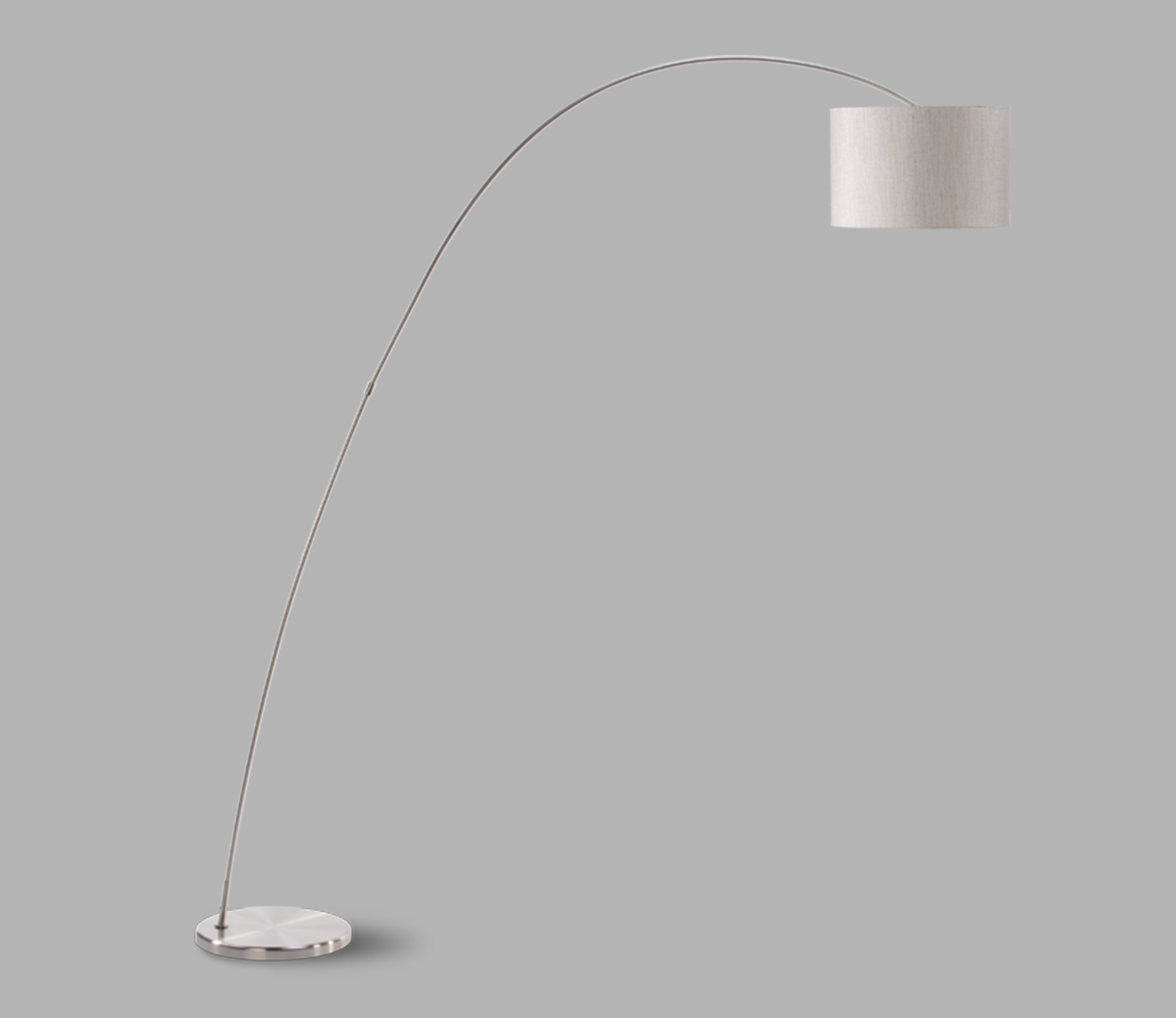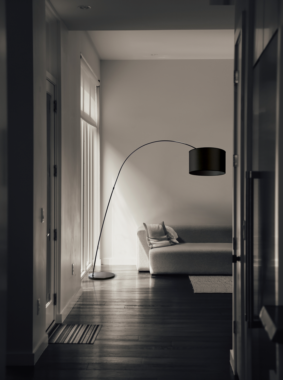 Bow ist eine Stehleuchte mit klassischer Bogenstruktur. Dank seiner Metallbasis, die eine hervorragende Stabilität garantiert, ist die Leuchte stabil auf dem Boden. Es montiert einen Schirm aus weißem oder schwarzem Stoff, der perfekt ist, um das Licht gleichmäßig in der Umgebung zu verteilen. Besonders geeignet für die Einrichtung großer Wohnräume, verwendet es eine E27-Fassung. EIN/AUS-Fußschalter am PVC-Kabel.