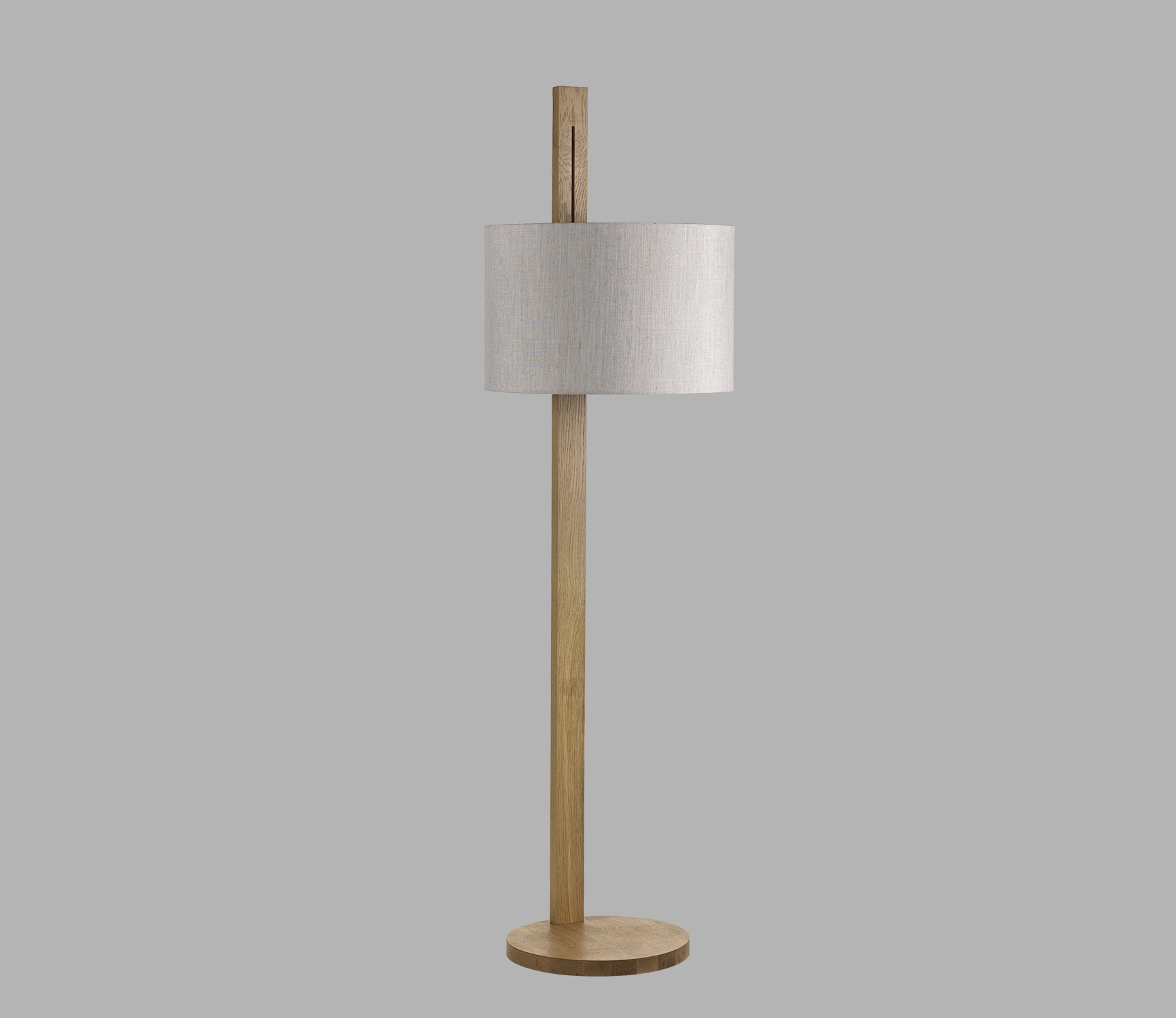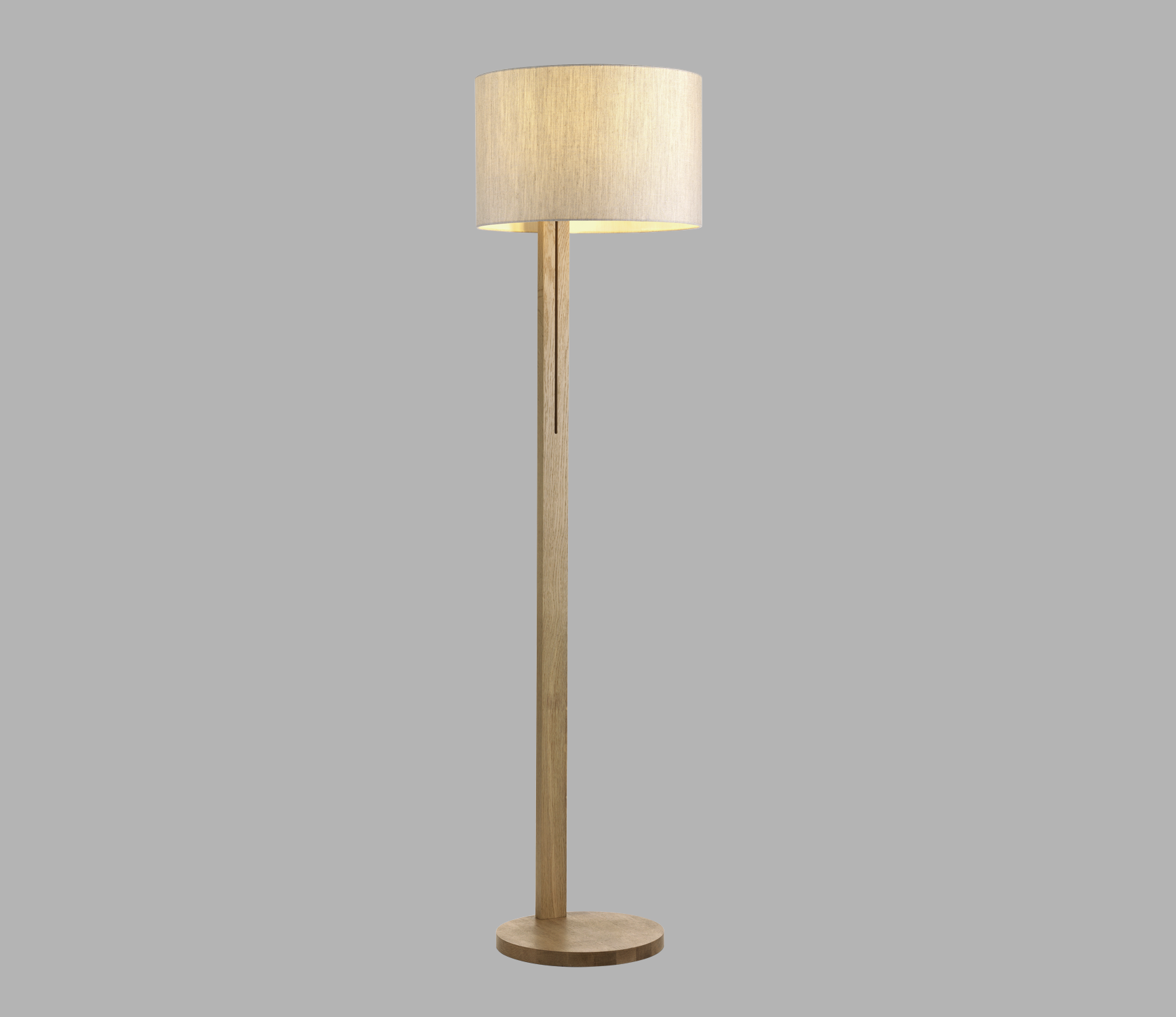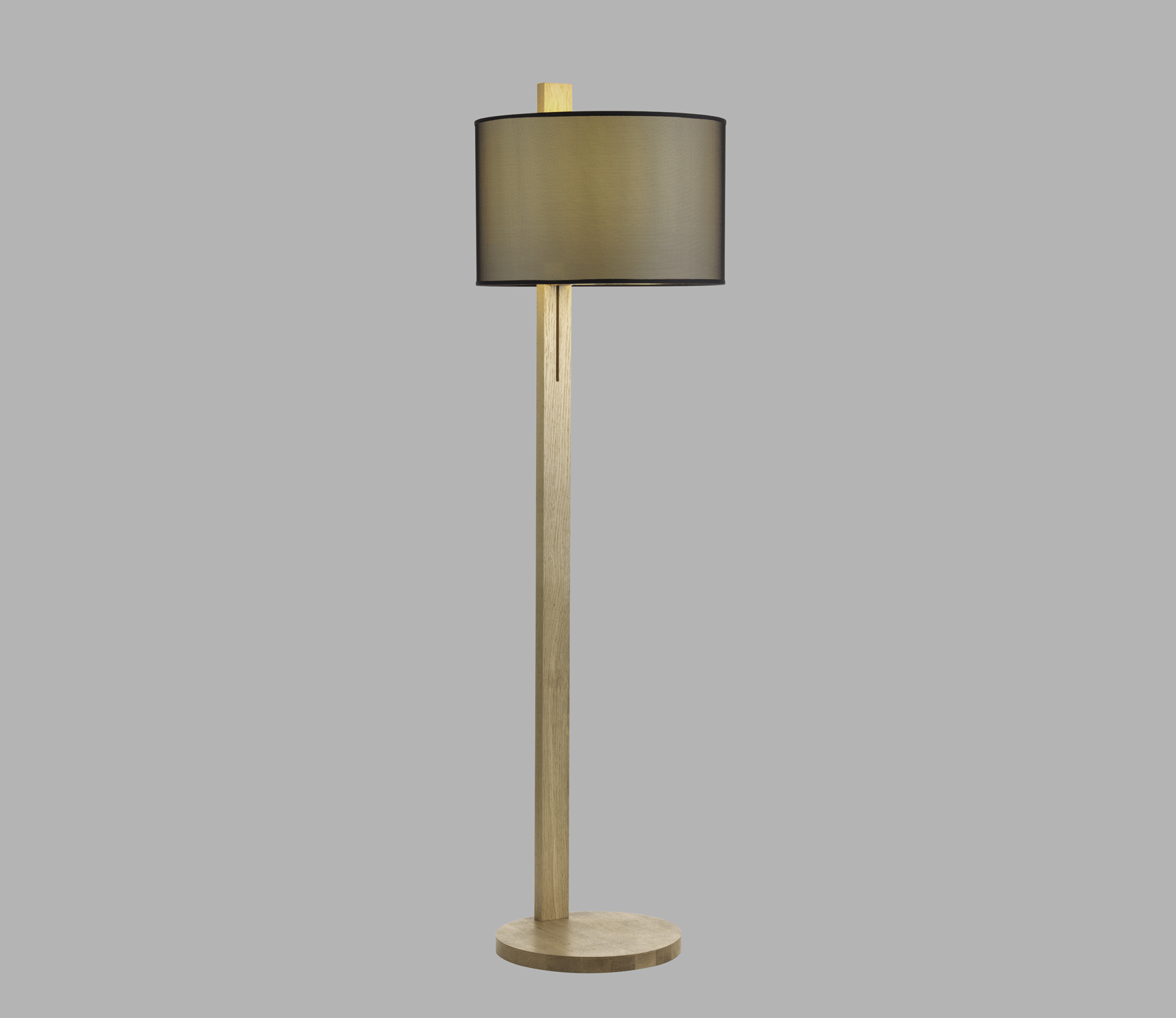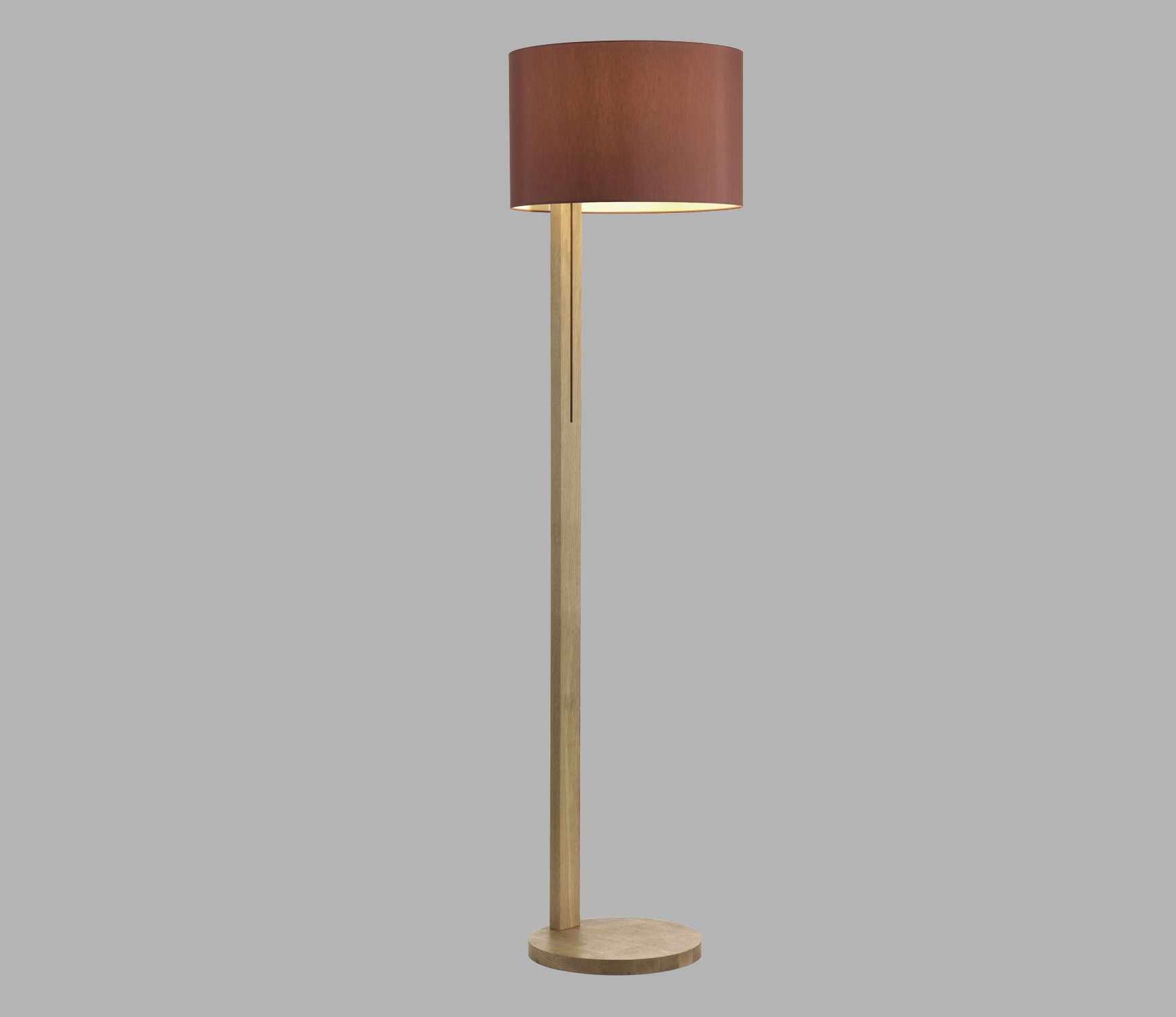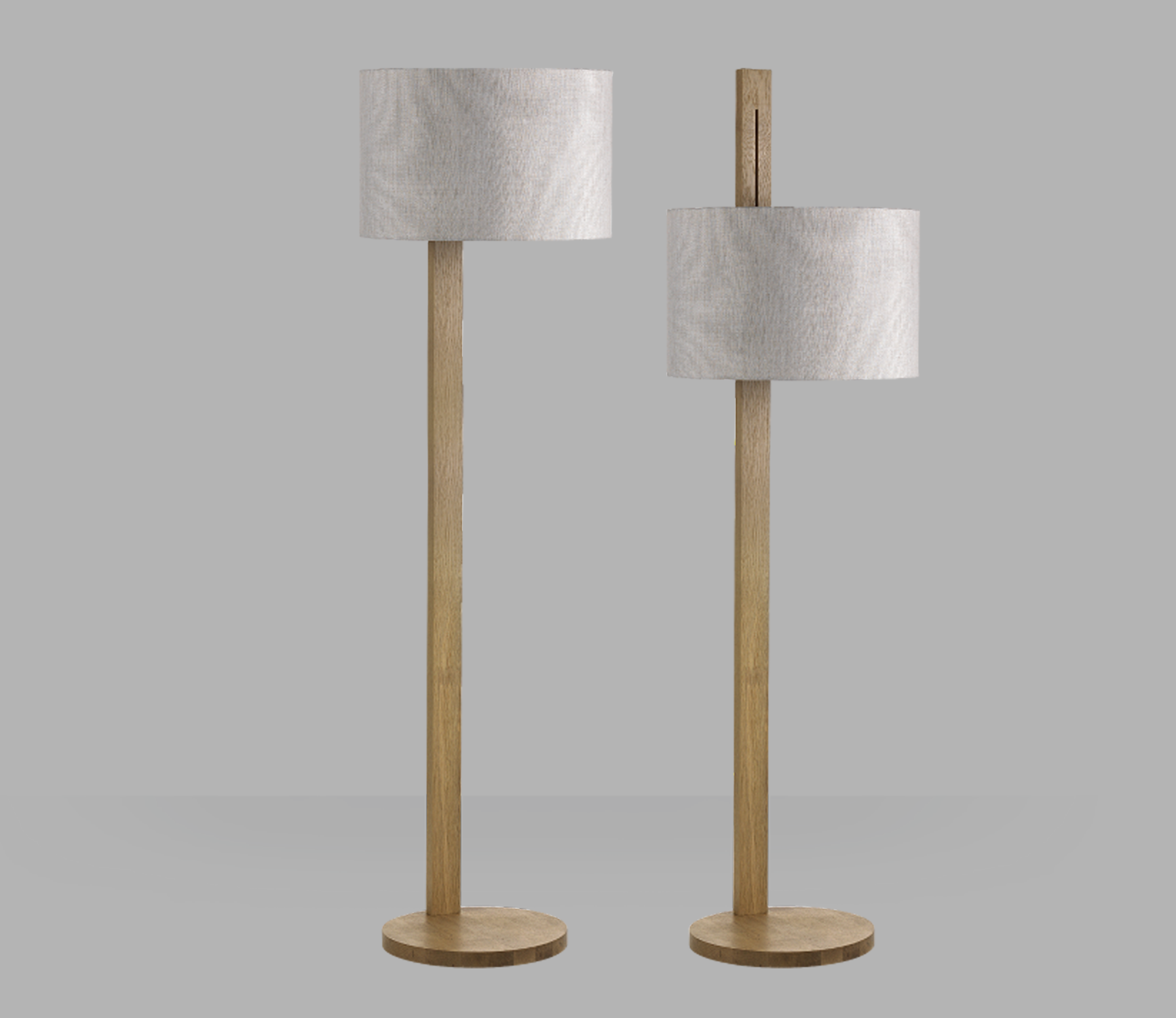 Shade is a floor lamp which is characterized by the possibility of adjusting the height of the lampshade; this slides along the rod and locks thanks to a ring placed on the rod itself. The lampshade is available in different finishes and is made of either fabric or eco-leather. The rod and base are made of natural wood. Complete with E27 fitting, Shade is the ideal floor lamp for diffused light effects. Complete with power cable covered in brown and white mesh fabric, maximum length 200 cm. and equipped with on/off foot switch.