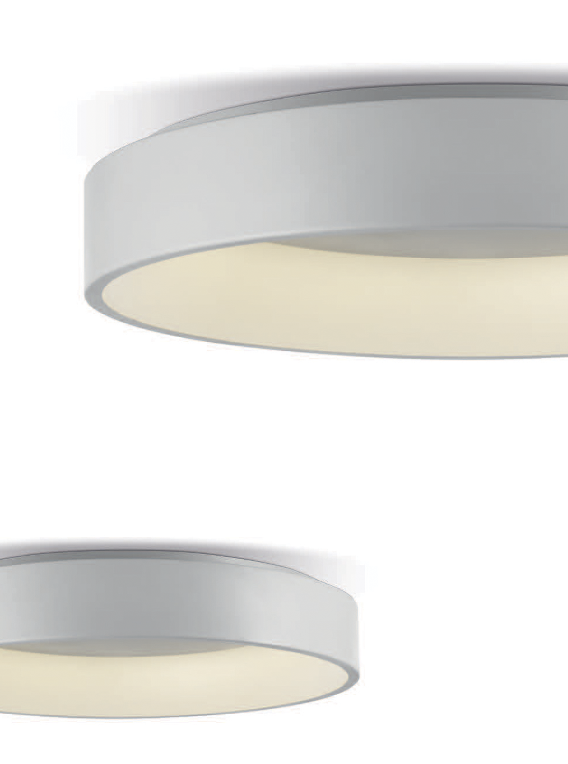Hoop è una plafoniera realizzata in alluminio verniciato bianco opaco ed equipaggiata di schermo diffondente in PMMA. Permette di ottenere una luce morbida e diffusa per illuminare gli ambienti in modo confortevole e senza la presenza di ombre dure. Il driver è incluso nell’apparecchio, può essere On/Off o dimmerabile multifunzione con controllo 1…10V, Push, DALI, ed alimenta le sorgenti LED SMD ad alta efficienza. Hoop è disponibile nella versione a plafone in diverse misure e potenze, e si completa con le analoghe versioni a sospensione. Disponibile nelle versioni dimmerabili “signal wireless” Bluetooth per reti mesh Pan Digital o Casambi.