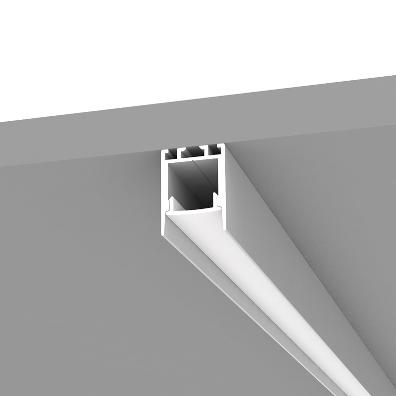 Extruded aluminum profiles for stripled suitable for mounting on any surface. Complete with satin polycarbonate screen. Color range: natural aluminum, white, black.