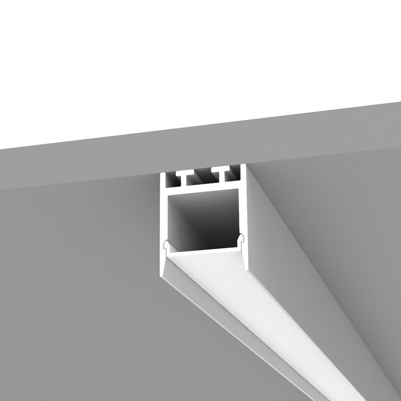 Extruded aluminum profiles for stripled suitable for mounting on any surface. Complete with satin polycarbonate screen. Color range: natural aluminum, white, black.