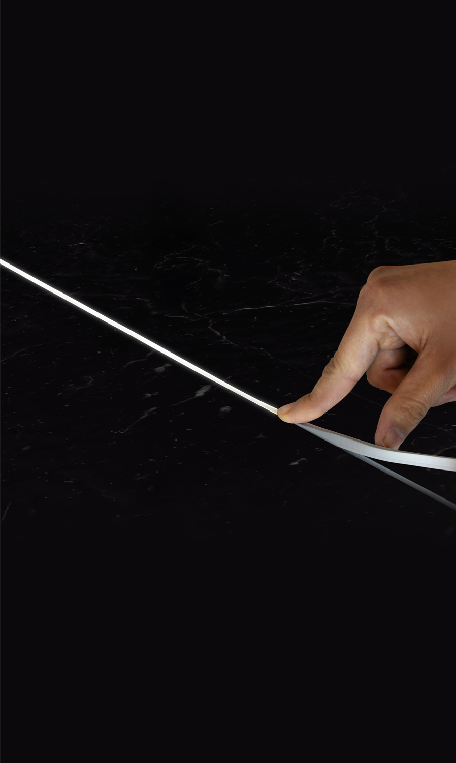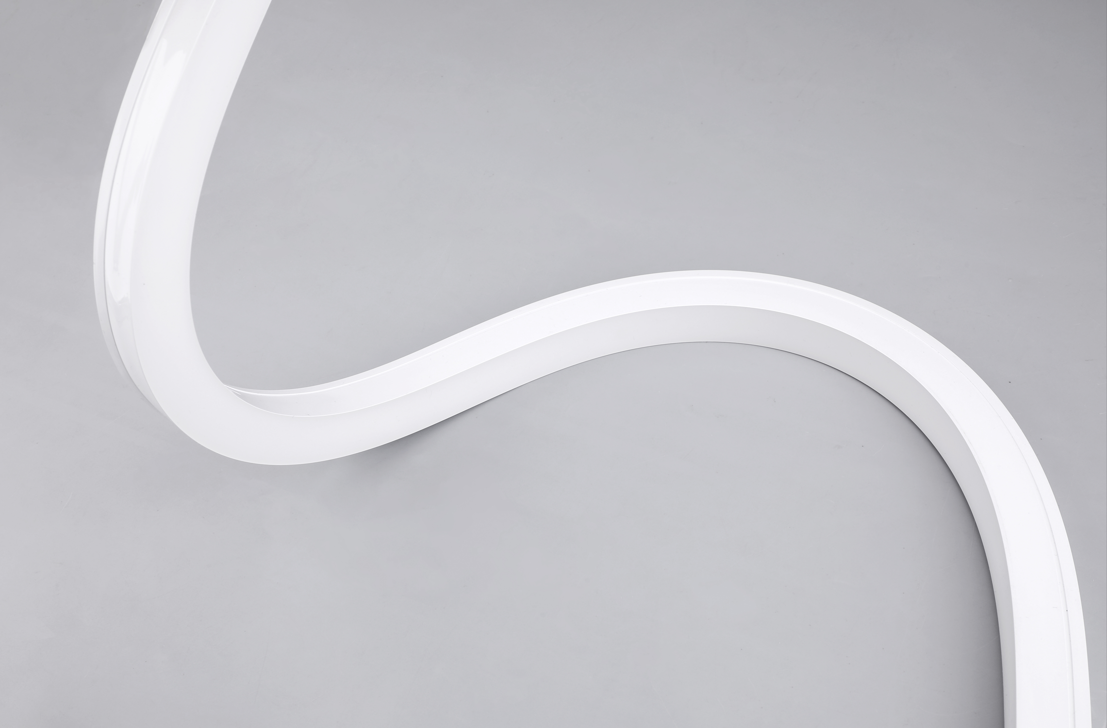 La linea di sistemi luminosi “NEON FLEX 2.0” semplifica le installazioni decorative in interni ed esterni. L’estrusione in silicone è ottenuta con processi avanzati ed efficienti, pienamente compatibili con il rispetto ambientale. L’alta qualità dei materiali impiegati garantisce miglior resistenza all’invecchiamento rispetto ad altre tipologie di uso comune. Disponibile in 3 diverse misure, Mini – Med e Maxi, ha sezione ed emissioni differenziate. Compatta e di facile impiego si adatta all’installazione in interni ed esterni (IP67). Mantiene morbidezza nella curvatura, garantisce forte resistenza agli urti ed agli agenti atmosferici. La versione MINI, (4*8,5mm) si curva lateralmente e si apprezza per la sottilissima linea di luce emessa. Il modello Med (8*8mm) si curva lateralmente e garantisce buoni flussi luminosi. Maxi (16*16mm) è “dual bend” e copre la maggioranza dei campi applicativi. La selezione proposta si apprezza per la finitura satinata della superficie, l’assenza di puntinatura (DOT free) ed il flusso luminoso costante ed omogeneo. Il taglio a misura risulta semplificato ed è facile ripristinare la sigillatura alle infiltrazioni grazie al kit che comprende fine linea e colla siliconica.