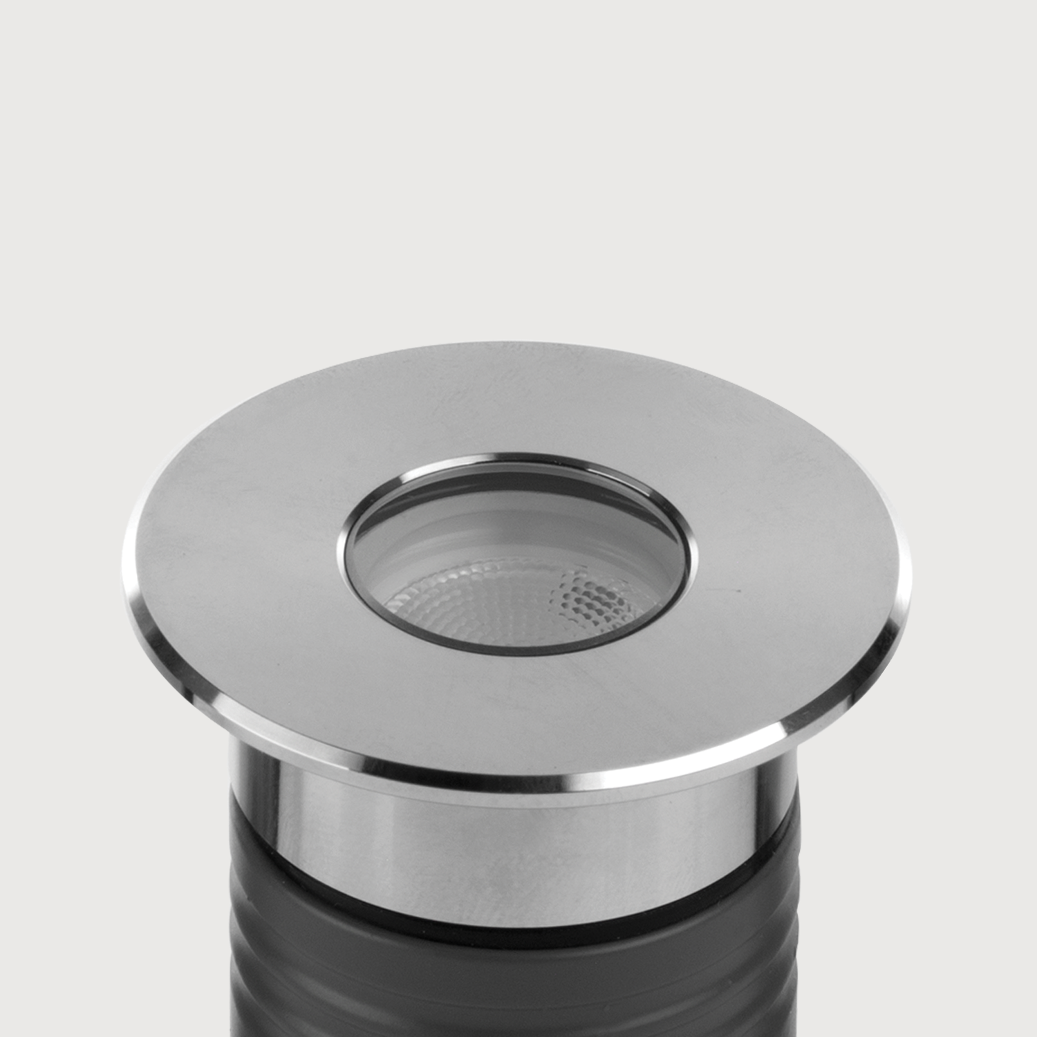 NIP includes a series of MINI recessed fixtures ideal for creating outdoor lighting installations where either white or RGB lighting effects are required. The fixture is equipped with a front panel made of AISI 316L stainless steel, specifically designed to resist corrosion even in critical environments. The protective glass is flushmounted to minimize the entry of dust and debris. NIP operates on a 24V DC voltage in the monochromatic versions and requires specific control in the RGB version. It comes with a dedicated PVC junction box with provisions for lateral connections and a pre-wired H05RN-F power cable measuring 1 meter.