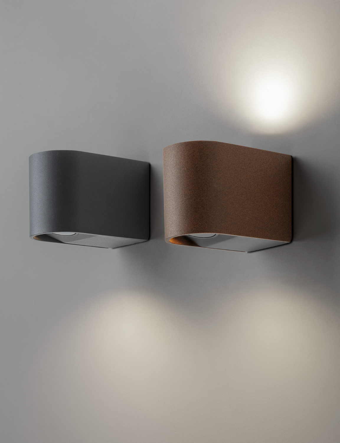 The new addition to our Exterior catalog is appreciated for any wall installation requiring contemporary aesthetics, efficiency, andattention to detail. Ideal for porches, covered areas, it is also suitable for indoor use. The fixture features a central die-cast aluminum structure housing both the power supply and the LED section. A powder-coated aluminum cover makes CHER suitable for various applications. Available in two versions: DOWN emission, for direct downward accent lighting, and UP-DOWN emission, providingboth upward and downward light, which is useful for most wall installations.