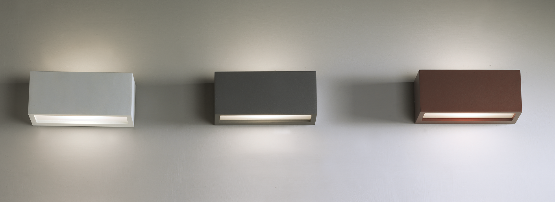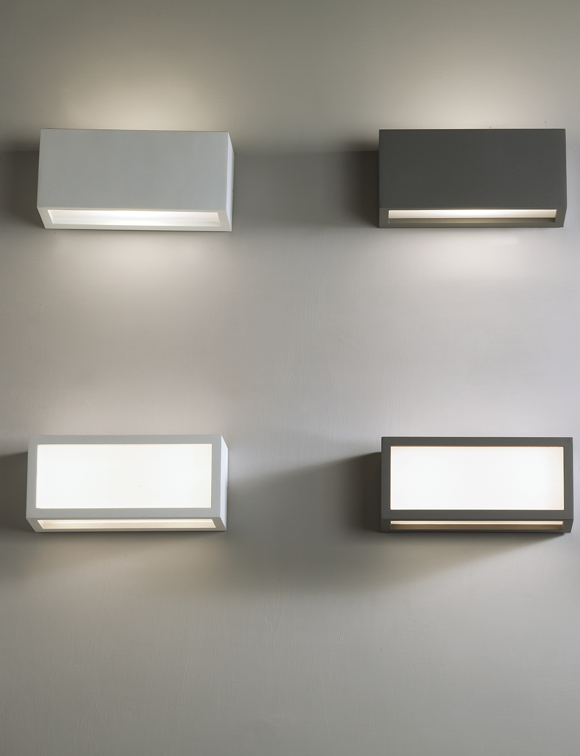 The Connection series offers a wide range of outdoor luminaires to be installed on facàdes; The body of the fixture is available in two different versions: with two openings for uplight / downlight effects or with three openings for diffused light effects. Made of die-cast painted aluminum, the fixtures of the series Connection can be easily installed thanks to their base which acts as a wall fixing plate; they are equipped with E27 lamp holder or with SMD Led and driver. They have opal screens and are available in three colours white, grey and rust.