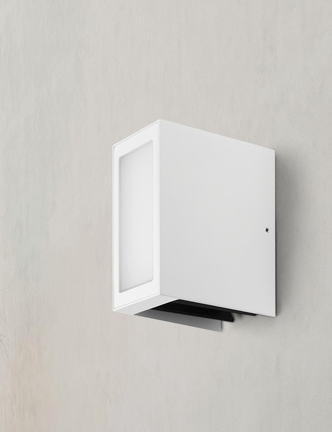 Win is made of die-cast aluminum and is suitable for a grazing lighting of walls and facades; it is suitable for wall installation and is equipped with an integrated driver and high efficiency LED sources. Win is available in the three colours white, grey and anthracite, and in the two different versions up/down and up/down with diffuser; both configurations are characterized by adjustable flaps, positioned in correspondence with both up and down emissions of the luminaire, which allow to gradually darken the light beams emitted, personalizing the luminous effect on the wall. The version with diffuser has an additional third led which, through the opal front glass, illuminates the surrounding area with soft and diffused light. Win can be installed on the wall thanks to the base independent from the body which facilitates the correct alignment of the fixing.