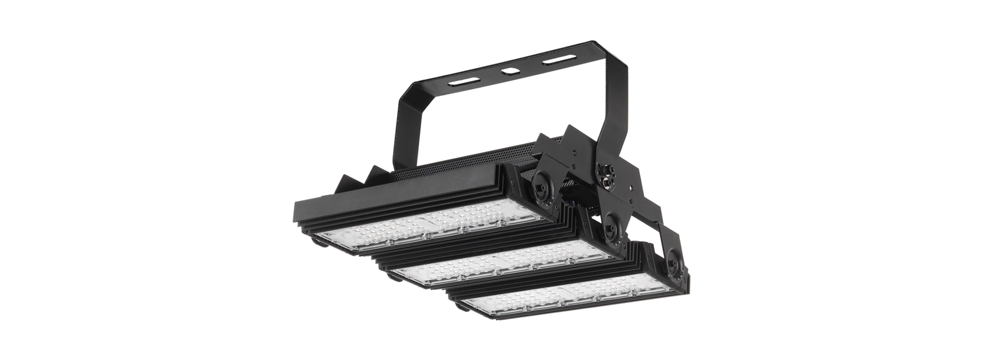 Modulares System für die Außenbeleuchtung von Sportplätzen und Industrie-Außenbereichen. LED- und Treiberkomponenten aus erster Wahl (nur führende Marken). Optische Module mit SMD-LED und optischen Linsen. Modul-Gehäusekörper aus stranggepresstem Aluminium zur Optimierung der Wärmeableitung. Um +90°/-90° drehbare optische Module mit Verstellsicherung. Leuchtengehäuse komplett mit Treiber. Befestigungsbügel aus korrosionsbeständigem Edelstahl 304 für die Wand- oder Deckenmontage. Mastmontage mit entsprechendem Standard-Montagesystem für das Mastende (Zubehör nicht enthalten). Innensechskantschrauben.
