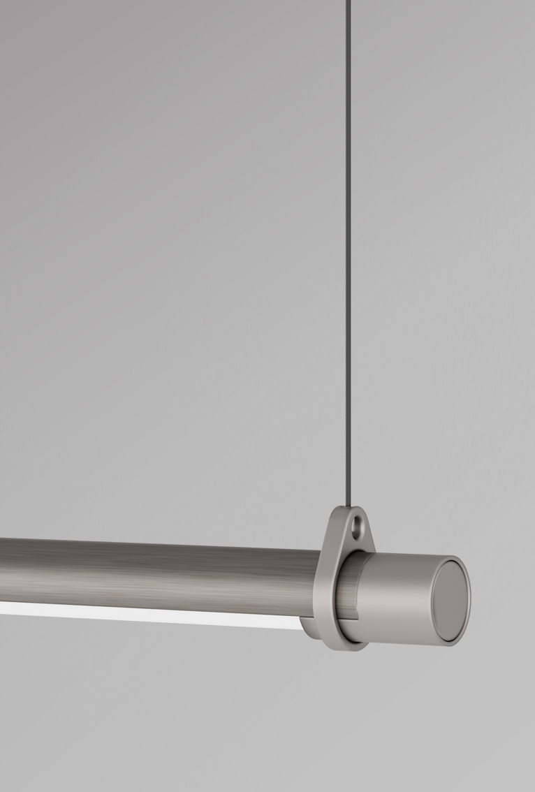 With TWENTY FREE, light is freed from all constraints. The new version of the TWENTY linear system is installed using thin steel cables fixed to the ceiling, allowing floating luminous lines to be composed in space with complete formal freedom. Each element is elegantly suspended and can be oriented to create dynamic, tailor-made visual effects. There are two luminous profiles, with lengths of 900 or 1600 mm, which can be freely integrated and repeated to compose light scenographies that are airy, graphic, and spectacular. TWENTY FREE is ideal for residential and contract environments, where light becomes an integral part of the architectural design. Refined finishes, nextgeneration LEDs, and impeccable build quality make TWENTY FREE more than a lighting system — it is a statement of style.